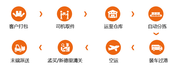 三态速递印度专线,整合优质的空运资源和当地优质的快递与邮政资源,一周六天航班,根据包裹最终收货地址,由香港直飞印度新德里或孟买两个机场,有效的缩短了派送距离,不仅节省了物流时间,也节省了巨大的物流费用,平均时效仅需5-8个工作日。