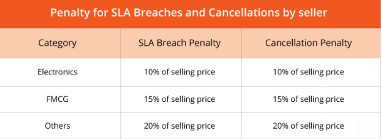 1.未在规定时效内妥投(目前为订单之日起17天内未妥投)、或者卖家主动取消订单(因缺货等原因需取消订单),按照下图规则收取罚金: