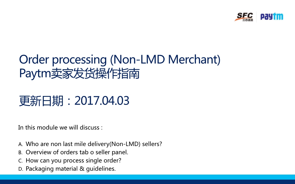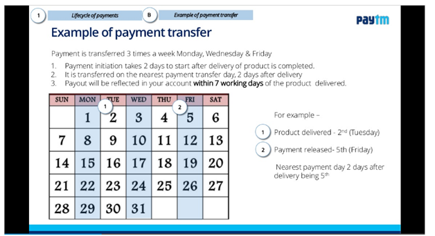 1. Paytm在订单派送成功后2-3天放款到代理公司